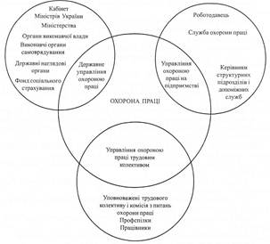 1.2.2. Система управління охороною праці У теперішній час в Україні здійснюються соціально-політичні та соціально-економічні реформи. Наша країна переживає етап відмирання централізовано-розподільних форм господарювання і народження економічних відносин у сфері праці, притаманних соціально-ринковій моделі управління. При цьому, природно, змінюються ролі й функції основних суб'єктів підприємницької діяльності: держави, роботодавця і працівника. Цей процес неминуче охоплює й охорону праці – невід'ємну частину будь-якого виробництва, а відтак і систему управління охороною праці. На основі розробок професора Г. Г. Гогіташвілі можна зробити висновок, що у сучасних умовах виникає 3 центри управління охороною праці: державне управління (не адміністративне); управління з боку роботодавця (власника підприємства); управління з боку працівників підприємства (рис. 1.3).