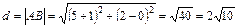 1) Длину стороны АВ найдем, используя формулу расстояния между двумя точками на плоскости: Подставляя в нее координаты точек А (–1; 0) и В (5; 2), получим: 2) По определению медианы точка М медианы CМ делит сторону АВ пополам. Следовательно, ее координаты определяются по формулам деления отрезка пополам: