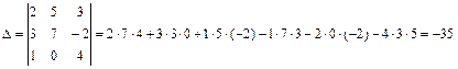 Т. о., получим: 3) Уравнение искомой плоскости составим как уравнение плоскости, проходящей через три данные точки A 1, A 2, A 3 в форме определителя 3-го порядка:
