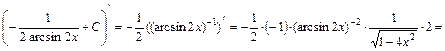Проверка. Покажем, что производная от найденного неопределённого интеграла равна подынтегральной функции. По свойству неопределённого интеграла это означает, что интеграл найден верно.