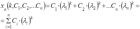 называется характеристическим уравнением, которое соответствует разностному уравнению (3). Характеристическое уравнение для разностных уравнений (3) и (5) одно и то же. Общее решение линейного разностного уравнения с постоянными коэффициентами (3) состоит из двух слагаемых 1) из общего решения линейного однородного уравнения (5), которое зависит от