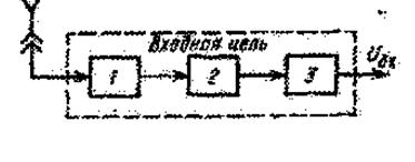 Рис.6. Структурная схема входной цепи радиоприемника. Входные цепи классифицируют по двум основным признакам: по числу колебательных контуров и по виду связи с антенной. Наиболее часто входная цепь содержит один колебательный контур. Двухконтурные и многоконтурные цепи применяют в случае необходимости обеспечения высокой избирательности. По виду связи с антенной различают входные цепи со следующими связями: индуктивной (рис. 7.б), емкостной (рис. 7.в), комбинированной (рис. 7.г) и непосредственной (рис. 7.а). Наиболее простая схема получается при непосредственном подключении антенны к входной цепи. Но из-за сильного влияния антенны на входную цепь она применяется редко. В некоторых случаях во входную цепь включают дополнительные фильтры, предназначенные для ослабления помех на промежуточной частоте (рис. 8).