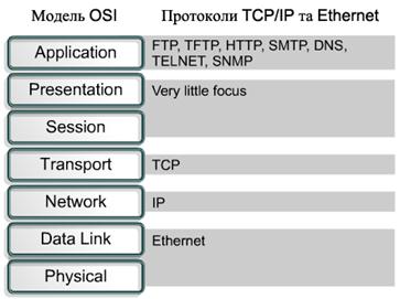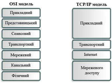 До схожості можна віднести: · обидва поділяються на рівні; · обидва мають прикладний рівень, але вони надають зовсім інші сервіси; · обидва мають співпадаючі транспортний та мережений рівні; · обидві моделі повинні бути вивчені мереженими професіоналами; · обидві розглядають та припускають комутацію пакетів. Тобто кожен пакет може бути доставлений до кінцевого пункту призначення власним шляхом. В протилежність до мереж з комутацією каналів де всі пакети передаються тим самим шляхом. До розбіжностей можна віднести: · TCP/IP модель об’єднує в прикладному рівні представницький та сеансовий рівні OSI моделі. · TCP/IP модель об’єднує в рівні мережного доступу (network access layer) канальний та фізичний рівні OSI моделі. · TCP/IP модель здається простішою так, як має меншу кількість рівнів. · Стек протоколів TCP/IP є стандартом на основі якого розвивався Internet, що зробило дуже великий вплив на поширення моделі TCP/IP. В порівнянні, для побудови мереж не використовують протоколи моделі OSI, яка використовується як керівництво. Не дивлячись на те, що протоколи TCP/IP є стандартами на яких побудовано Internet, вивчення та використання моделі OSI ґрунтується на наступному: · він є загальним, незалежним від протоколу стандартом; · він має більше складових, що роблять його зручнішим для вивчення і розуміння; · має більше рівнів та їх складових, які можуть бути корисні, при пошуку несправностей. Спеціалісти з комп’ютерних мереж поділяються в думках яку ж модель краще використовувати. Але виходячи з стандартів промисловості необхідно знати дві моделі. Причому треба зауважити, що є принципова різниця між протоколами та моделями, які використовуються при побудові мережі. Модель OSI використовуватиметься для опису протоколів TCP/IP.