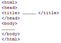 Засоби, призначені для зв'язування документів і форматування даних мовою HTML, називаються дескрипторами (tag,англ.). Текст Web-сторінки й дескриптори розміщаються в одному файлі, який називається HTML-документом. Документи HTML зберігаються у вигляді файлів з розширенням *.htm або *.html. Дескриптори визначають зовнішній вигляд Web-сторінки у вікні Web-оглядача. Дескриптори HTML управляють структурою й особливостями форматування інформації у браузері на Web-сторінці. Дескриптори бувають парними та непарними і містять певну інструкцію, яка впливає на текст, що знаходиться між ними усередині. В HTML-документі можна виділити такі частини: заголовок і тіло документа (рис. 5). У заголовку в основному містяться інформація про сам документ і яка не впливає на відображення Web-сторінки. На противагу заголовку всі дані, що розміщені в тілі документа, виводяться на екран. Розміщаючи складові документа, необхідно знати у яку частину необхідно включити той або інший з них. Зокрема, дескриптор, що визначає назву документа, необхідно розміщати в заголовку.