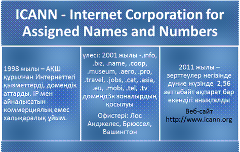 Домендік адрестер. Цифрлық адрестер-бұл да компьютердің қарым-қатынасы арқасында түсінікті болды. Цифрлық адрестерді айту және жаттау қиын. Сондықтан Internet-тегі компьютерлерге аттар беріледі. Internet қолданбалы программалары компьютердің сандықадрестерінің орнына аттар жүйесін қолданады. Internet–тің жаңа қалыптасу кезінде аттарды