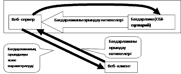 Ереже бойынша, Веб-қосымшалар – клиент ретінде браузер ал сервер ретінде веб-сервер болатын қосымшалар. Клиентсіз және серверсіз ешқандай НТТР-алмасу мүмкін емес. Бірақ клиент пен серверден бөлек веб-сеанста веб-бағдарламалаудың объектсісі болып табылатын басқа да бағдарламалар қатыса алады. Веб-қосымшаның нәтижесі болып браузер терезесінде көрсетілетін веб-беттер табылады. Сонымен қатар веб-қосымшаның өзі клиенттің компьютерінде де сервердің компьютерінде де орындала алады. Екі схеманы қарастырып көрейік. Клиент-машинада орындалатын бағдарламалар Клиент-машинада орындалуға арналған бағдарламалар типінің бірі болып сценарийлер болады, мысалы, JavaScript (VBScript). Сценарийдің негізгі мәтіні веб-беттің бір бөлігі болады, сондықтан JavaScript сценарийі клиентке өзі кіретін документпен қоса беріледі. HTML-құжатты өңдей отырып, браузер сценарийдің негізгі мәтінін тауып оны орындауға жібереді. Серверден клиент-машинаға берілетін және орындалатын барлық бағдарламаларға бір ортақ талап қойылады: бұл бағдарламалардың өздері орындалатын компьютердің ресурстарына қатынау мүмкіншілігі болмау керек. Бұндай талап толығымен негізделген. Өйткені Java-апплеттердің және JavaScript-сценарийлердің желі арқылы берілуі және орындалуы қолданушының араласуынсыз автоматты түрде орындалады, сондықтан бұл бағдарламалардың жұмысы компьютер үшін мүлдем қауіпсіз болуы керек. Басқа сөзбен айтқанда, клиент-машинада орындалатын, бағдарламаларды жасауға арналған тілдер вирустар жазуға немесе басқа да бағдарламалар жазуға жарамсыз болуы керек. Серверде орындалатын бағдарламалар Серверде жұмыс істейтін бағдарламаның коды клиентке берілмейді. Клиенттен арнайы сұраныс алған кезде сервер оны орындауға жіберіп сұраныстың құрамына кіретін параметрлерді жібереді. Бұндай сұраныстарды генерециялауға арналған құралдар әдетте HTML-құжаттың құрамына кіреді. Бағдарлама өзінің жұмысының нәтижелерін HTML-құжат түрінде дайындап оны веб-серверге береді, ал соңғысы өз кезегінде алынған мәліметтерді HTTP-тақырыппен толықтырып оны клиентке береді.