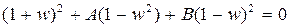 или Аw w2 + Bww + Cw = 0 (2.13.6) где Аw = 1-A+B; Bw = 2(1-B); Cw = 1+A+B (2.13.7) Для асимптотической устойчивости уравнения с характеристическим уравнением (6), необходимо и достаточно, чтобы выполнялись условия Аw>0, Bw>0, Cw>0. (2.13.8) Область устойчивости в параметрах А, В системы с характеристическим уравнением построена на рис. 3. Построим область устойчивости в плоскости параметров А, В, используя соотношения (7), (8).