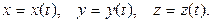 Положение точки в пространстве относительно выбранной системы координат определяется координатами x, y, z. Уравнения движения точки представляют собой зависимость координат движущейся точки от времени: