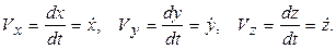 Сравнивая эти два выражения, получим проекции скорости на оси координат:
