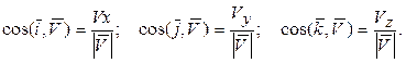 Направление вектора скорости определяется направляющими косинусами углов, которые вектор скорости образует с координатными осями (с положительным направлением осей): Проекции вектора ускорения на оси координат