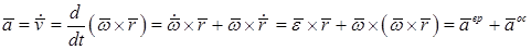 4) Определяем ускорения точек тела. Ускорение точки тела определяем как геометрическую сумму осестремительного ускорения