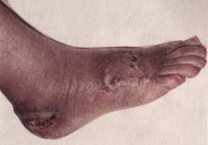 Клинические особенности бугоркового сифилида: «плотные, округлой формы, тёмно-красного или «величина бугорков от конопляного зерна до горошины; «нечувствительны при давлении; «не сопровождаются субъективными ощущениями; «существуют долгое время без заметных изменений; «исчезают бугорки 2 путями: - постепенно рассасываются, уплощаются и шелушатся; - распадаются (медленный распад – образование временной тёмно-коричневой корки в центре бугорка; быстрый распад - безболезненная язва, круглой формы, с отвесными плотными краями и дном, покрытым желтовато-серым, плотно приставшим налётом); «на месте бугорков в исходе остаются рубцы; «бугорки обладают склонностью к группировке - располагаются в виде замкнутого круга, дуги, гирлянды или в виде дробинок, как при выстреле с близкого расстояния (сгруппированный бугорковый сифилид). «соседние элементы обычно не сливаются; «иногда вследствие высыпания по периферии новых бугорков очаги поражения как бы ползут, занимая обширные участки кожи (ползущий сифилид). Разновидности бугоркового сифилида: à сгруппированный «площадкой»; à карликовый; à ползущий.