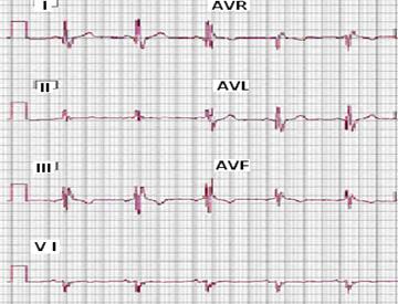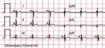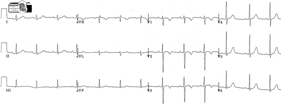 І. Нормальна ЕКГ. У новонароджених і немовлят на ЕКГ спостерігається перевага правого шлуночка (результат фетального кровообігу) (рис. 5), яка в старшому віці (3 – 4 роки) змінюється на лівошлуночкову домінанту і не відрізняється від ЕКГ дорослих (рис. 6).
