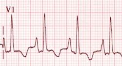 ІІ. Внутрішлуночкова блокада. При внутрішлуночковому блоці спостерігається подовження комплексу QRS. Виникає при метаболічних порушеннях (гіперкаліємія), ішемії міокарда (під час чи після серцево-легеневої реанімації), вживанні деяких ліків (прокаїнамід, трициклічні антидепресанти) і при дифузних захворюваннях міокарду (системні захворювання з залученням міокарду).