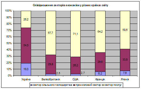 Рис. 3.2. Співвідношення секторів економіки в різних країн/60/