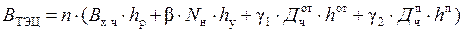 где В х ч− расход топлива на холостой ход турбоагрегата, т.у.т./час; N н − номинальная мощность турбоагрегата; b, γ1, γ2 − коэффициенты топливной характеристики, постоянные для данного типа мощности, состояния турбоагрегата; п - количество турбоагрегатов; h р - число часов работы турбоагрегата за год, ч; h у - число часов использования установленной мощности, ч; h п - число часов использования максимальных отборов турбины производственных параметров; h от - число часов использования максимальных отборов турбины отопительных параметров;