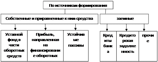 По источникам формирования оборотные средства предприятия подразделяются на собственные и заемные (привлеченные) (рис.2.1)