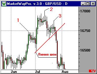 Пробой ценой линии шеи является сигналом начала сильного движения рынка против предшествующей тенденции. Обычно цены проходят расстояние от точки пробоя не менее расстояния от вершины головы до линии шеи, отмеренного по вертикали.