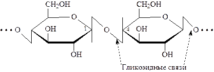 Это высокомолекулярные углеводы, содержащие сотни и даже тысячи моносахаридных остатков. Из полисахаридов широко известны целлюлоза, крахмал и гликоген. Они построены из одного и того же моносахарида – D-глюкозы. Общая формула (С6Н10О5)n. Целлюлоза (клетчатка) – самый распространенный не только полисахарид, но и органическое вещество в природе. Древесина примерно на 50% состоит из целлюлозы, а хлопок и лен представляют практически чистую целлюлозу. В целлюлозе остатки D–глюкопиранозы связаны между собой b–(1®4) – гликозидной связью: