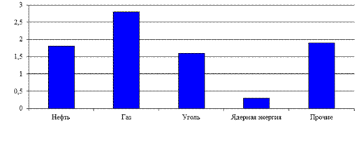 Рисунок 1.1. Темпы среднегодового прироста основных видов топлива и энергии в мире до 2025 г.