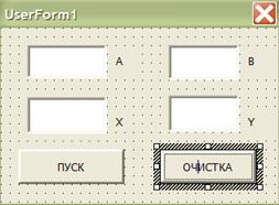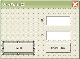 На форму нанесены элементы управления: TextBox1, TextBox2, TextBox3,TextBox4, CommandButton1, Label1, Label2, Label3, Label4, Label5, Label6, Label7, Label8, Label9, Label10. Свойство Caption изменено у элементов: Label2, Label3, Label4, Label5, Labe6, Label7, Label8, Label9, Label10, CommandButton1.