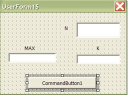 На форму нанесены элементы управления: TextBox1, TextBox2, TextBox3, Label1, Label2, Label3, CommandButton1. Свойство Caption изменено у элементов: Label1, Label2, Label3, CommandButton1.