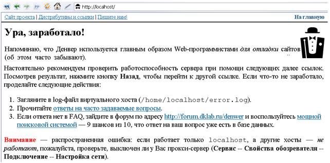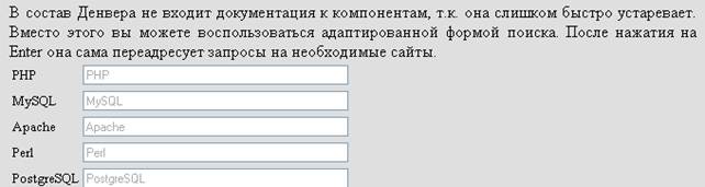 Рис. 1.30. Состав окна разработчика Денвер (частично).