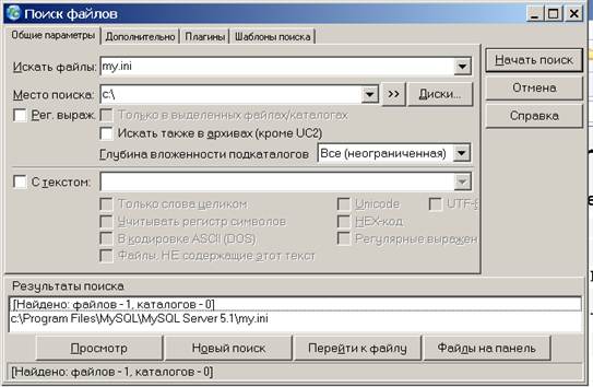 Рис. 1.32. Поиск установочного файла My.ini для СУБД MySQL.