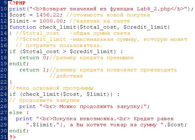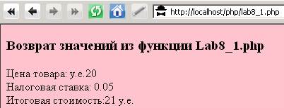Задание 3.Возврат значений функцией. Lab8_1.php