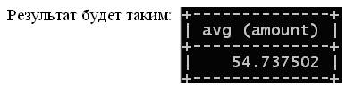 Рис. 3.256. Результат AVG по столбцу amount таблицы orders.