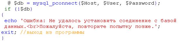 Для подключения к серверу MySQL в сценарии (рис. 3.268) присутствует такая строка: @ $db = mysql_pconnect($Host, $User, $Password);