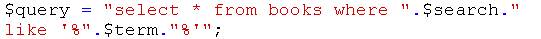 В этом случае будет отыскиваться значение, введенное пользователем ($term), в поле, которое указал пользователь ($search). Вы, наверное, обратили внимание на то, что мы употребили like, отдав ему предпочтение перед equal — толерантность никогда не бывает излишней.