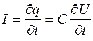 В цепи конденсатора пойдёт ток, величина которого равна скорости изменения заряда конденсатора или пропорциональна скорости изменения напряжения на его зажимах.