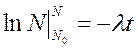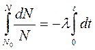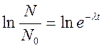 Используем начальные условия, что в момент времени t=0 число ядер равно N0, а в любой момент времени t число ядер – N. С учетом этого получаем:
