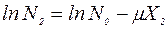 где: J0 - интенсивность излучения без поглощения среды; J - интенсивность после поглощения средой толщиной X. Интенсивность излучения β и γ - лучей до и после поглощения, I пропорциональна N числу импульсов, зарегистрированных прибором за время t. Тогда из формулы (5) имеем: