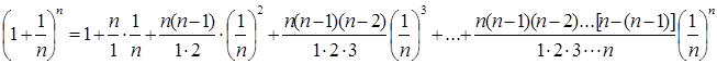 Розглянемо послідовність {xn} = Якщо послідовність {xn} монотонна й обмежена, то вона має кінцеву границю. За формулою бінома Ньютона: