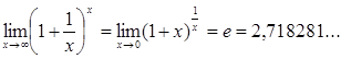 Таким чином, число е укладене між числами 2,5 й 3. Якщо взяти більшу кількість членів ряду, то можна одержати більш точну оцінку значення числа е. Можна показати, що число е ірраціональне і його значення дорівнює 2,71828... Аналогічно можна показати, що Припустимо: