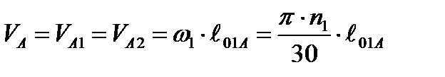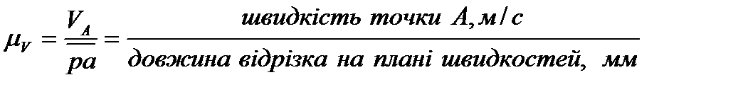 З довільно взятої точки Рv (полюса плану швидкостей) відкладемо відрізок ра (рис. 1), перпендикулярний до О1А на плані механізму, тобто паралельно швидкості уаі напрямної по дотичній до траєкторії точки А в напрямі руху кривошипа О1А (див. схему механізму). Масштабний коефіцієнт плану швидкостей