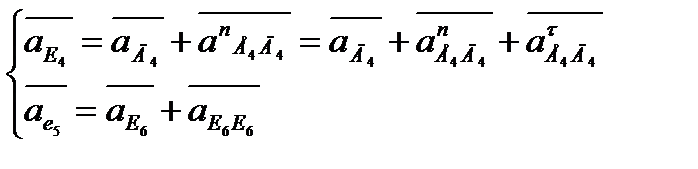 Прискорення точки Д на плані прискорень знайдемо, виходячи з теореми подібності: Прискорення точки Е повзуна 5 знайдемо за рівністю: