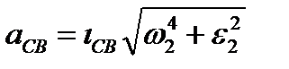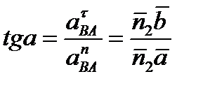 Тобто, прискорення точки В визначили, як геометричну суму прискорення полюса і відносного прискорення при обертанні її навколо полюса, один раз прийнявши за полюс точку А2 шатуна, другий раз - точку О2 коромисла. Прискорення аB2 = аB3, оскільки в точці В шатун і коромисло з'єднані шарнірнo. Відносні прискорення аB2 A2 і аB3 – невідомі ні за напрямом, ні за модулем. Тому для розв'язання рівняння (11) відносні прискорення розкладемо на дві складові — нормальне і тангенціальне, перше з яких за модулем можемо визначити так: