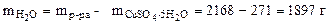 Зная массу раствора и кристаллогидрата, определяем массу воды, необходимую для приготовления заданного раствора: