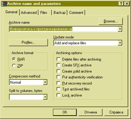 Рис. 5.2. Диалоговое окно WinRAR «Имя архива и параметры».