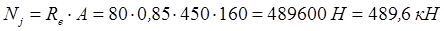 A=t×d, где d – расчётная ширина простенка (рис. 1). 0,85 - коэффициент, учитывающий площадь простенка, которая меньше 0,3 м2. Фактическая внешняя нагрузка, передающаяся на простенок шириной 450мм, равна: