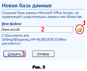 Рис. 2 Створювати елемент БД можна в декількох режимах: конструктор, майстер, шаблон. Процес створення бази даних проходить у декілька етапів: