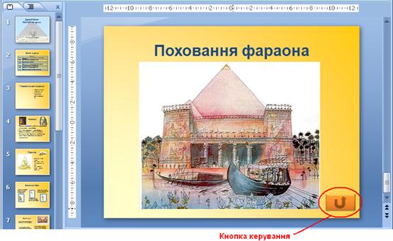 Вставка кнопок управління. Перейдіть на слайд Поховання фараона.