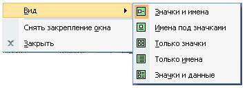 Рис. 1 Управління панелями елементів блок-схем. При виборі одного з видів схем зліва у програмному вікні з’являються одразу панелі елементів схеми. Прибрати/вивести панель з екрану можна командою Вид-Фігури. Щоб закрити непотрібну панель потрібно викликати контекстне меню на цій панелі і вибрати команду Закрити. Також в контекстному меню можна змінити вигляд значків (Рис.2)