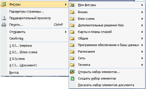 Рис. 2 Для кожного виду схеми існують свої панелі. Для того, щоб використати панелі з інших схем, потрібно виконати команду Файл-Фігури і вибрати потрібний тип фігур (Рис.3).