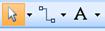 Рис. 6 Виділення фігур. Існує декілька способів виділення елементів. 1. Щоб виділити один елемент потрібно клікнути на ньому лівою кнопкою миші. 2. Щоб виділити групу елементів потрібно затиснути ліву кнопку миші на робочій області і провести мишею по робочому листу. Видалення фігур відбувається так само, як і інших об’єктів. Потрібно виділити її мишею і натиснути кнопку Del. З’єднувальна лінія видаляється окремо від елемента. Для введення тексту у фігуру потрібно двічі клікнути лівою кнопкою миші на фігурі. Зображення фігури збільшиться і з’явиться поле для тексту. Щоб вийти з режиму редагування потрібно клікнути мишею за межами фігури. Якщо треба зробити окремий напис, то потрібно на панелі інструментів натиснути кнопку Текст (Рис.7). Курсор миші змінить свою форму, після чого клікнути в робочій області і ввести текст. Щоб завершити введення тексту слід вибрати кнопку Вказівник на панелі інструментів.
