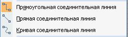 Рис. 5 З’єднувальна лінія має свої маркери. Зелений колір позначає внутрішні і вільні вузли. Червоні маркери показують з’єднання з елементом. Якщо з’єднання немає – маркер кінця лінії міняє колір на зелений. Форму з’єднувальної лінії можна змінити. Для цього викликати контекстне меню і вибрати команду Пряма, Прямокутна або Крива лінія (Рис.6).