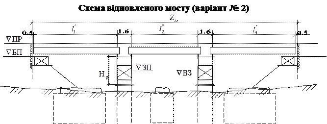 Для розробки схем по Варіанту І і Варіанту II необхідно накреслити вихідні дані, частини моста котрі залишились після руйнування моста без змін, непошкодженими і які можуть використовуватися при відновленні
